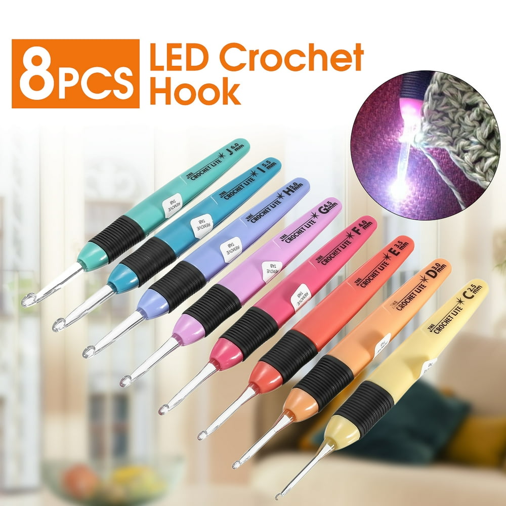 9Pcs/Set LED Light Up Crochet hook Knitting Needles Hooks weave Sewing ... (Travis Paul) Yarniss rechargeable light-up crochet hook set. Our light crochet hooks also come with a perfect red crochet hook case. Store all of your light up hooks in this tough and water-resistant crochet hook case and not worry about losing any crochet hooks or crochet needles again!.